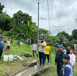 Freitag haben wir dann auch das Innenleben des Brunnens herausgenommen. Wir haben die Rohre gereinigt, den Zylinder und Kolben kontrolliert ob sie noch gut sind und funktionieren. Es war alles gut. Danach haben wir mit dem ausspitzen der Pfosten weitergemacht. Um 12:00 ist das Wasserflugzeug gekommen und hat Christian abgeholt und nach Cashibo gebracht. Aus Cashibo haben sie Geisen Pezo mitgebracht, der eine weitere Woche mit mir unterwegs sein würde. Wir haben am Nachmittag dann den neuen Mechanismus zusammengebaut und die neuen Pfosten frisch einbetoniert. Am Abend hatten wir noch gute Gespräche mit Pastor Genaro und einige anderen Leute.